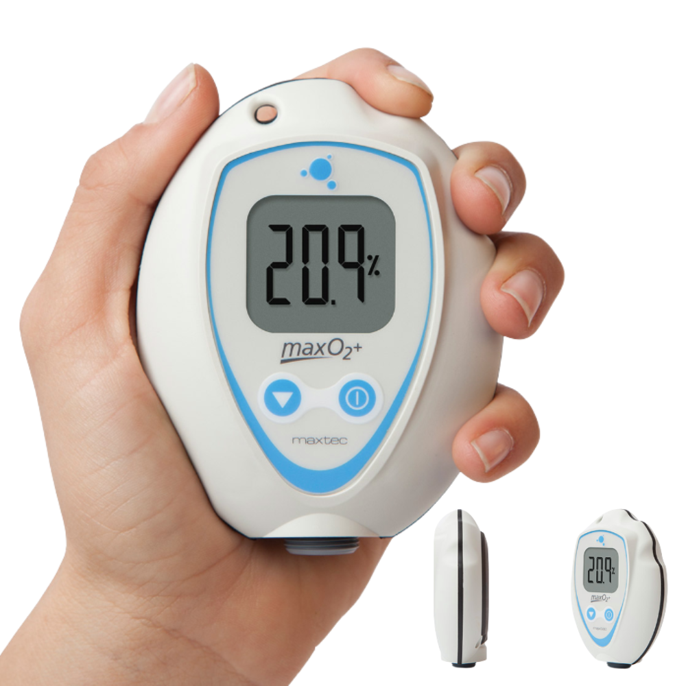 El  MaxO 2 + AE se utiliza mejor donde se requiere un analizador en línea, especialmente útil con ventiladores u osciladores más antiguos. Su diseño ergonómico patentado se adapta cómodamente a su mano y cuenta con una calibración simple de un toque y un control de ENCENDIDO/APAGADO. El  MaxO 2 + AE se calibrará al aire de la habitación (20,9 %) o al 100 % de oxígeno. Para aplicaciones que requieren un sensor interno, consulte nuestro MaxO2+ A.